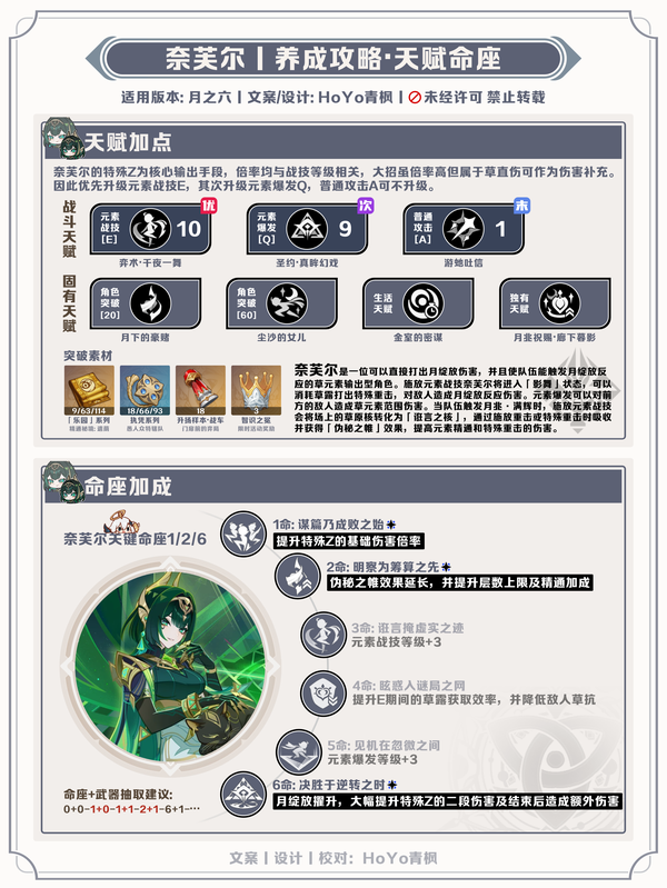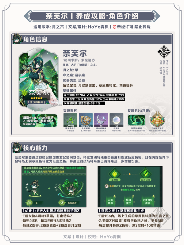 秘闻馆之主培养:《原神》6.5版本下半卡池已正式开启,复刻五星角色奈芙尔定位为草元素输出型角色,在绽放与燃烧相关体系中具备较高的上场率。这边以图解形式整理了该角色的养成参考,内容涵盖武器选择、圣遗物搭配、天赋升级优先级及队友组合方案。